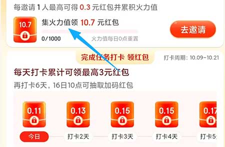 京东APP端,集火力值,有10.7的红包