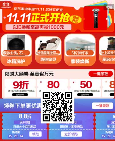 家电家居双11 国补加磅 至高五折 里面的券领了 备用
