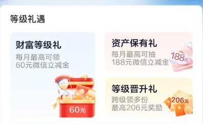 有财富等级礼,资产保有礼,等级晋升礼,根据等级几个立减金