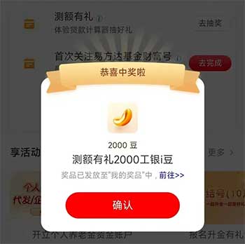 工行测额有利,抽100~2000豆子。