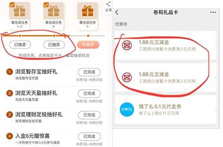 工行抽 有微信立减金